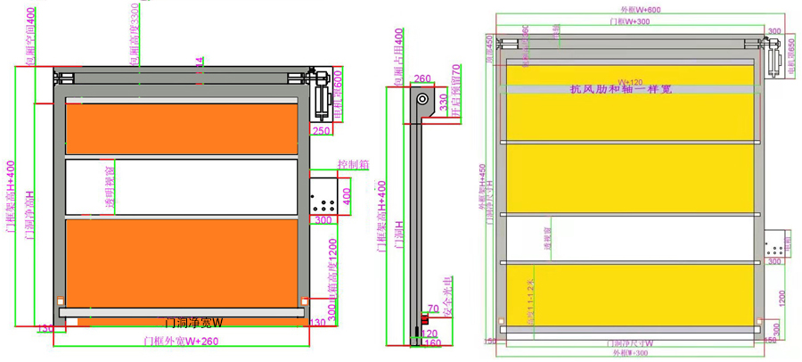 門洞凈尺寸寬: W(600-3600)*高H(1000-3600) |