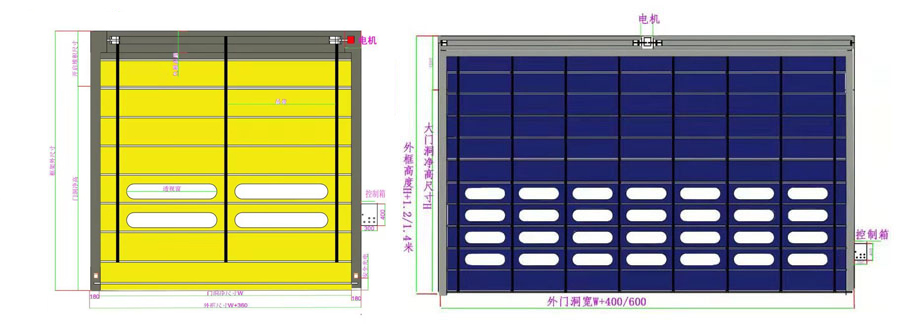 雙向通透PVC透明視窗,厚度:120-150cm,寬度:150cm長方形或橢圓形也可做全透明門簾用;增加光亮度及安全視線。以便觀察快速卷簾門門二側(cè)的情況,從而避免了碰撞情況的產(chǎn)生。